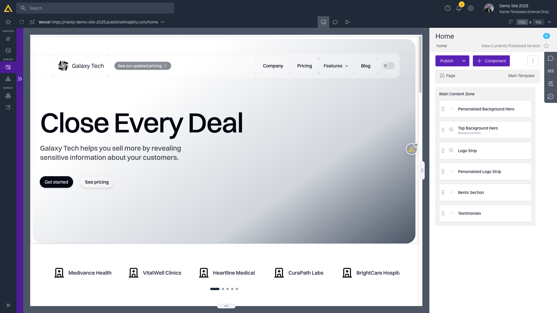 Note: Personalization is configured through components like PersonalizedBackgroundHero and PersonalizedLogoStrip.