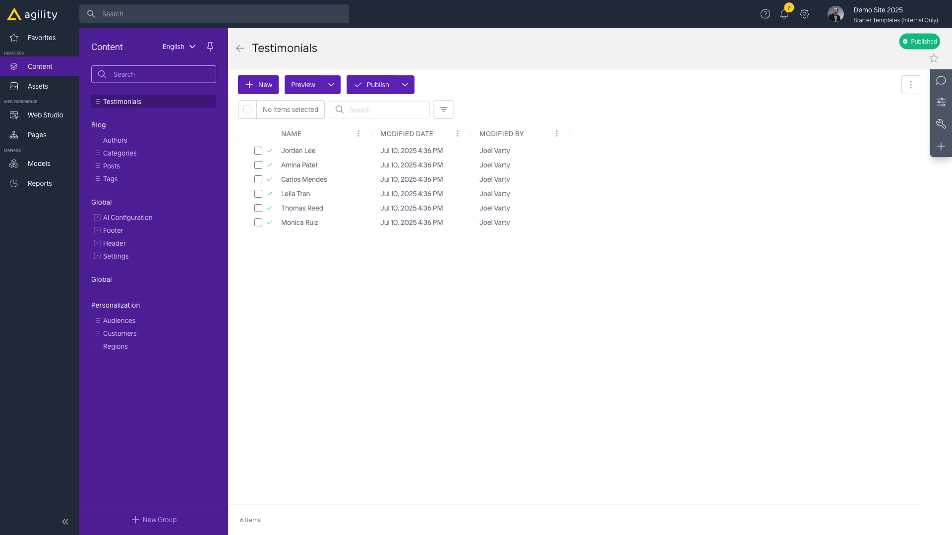 Demo Site: Content Models